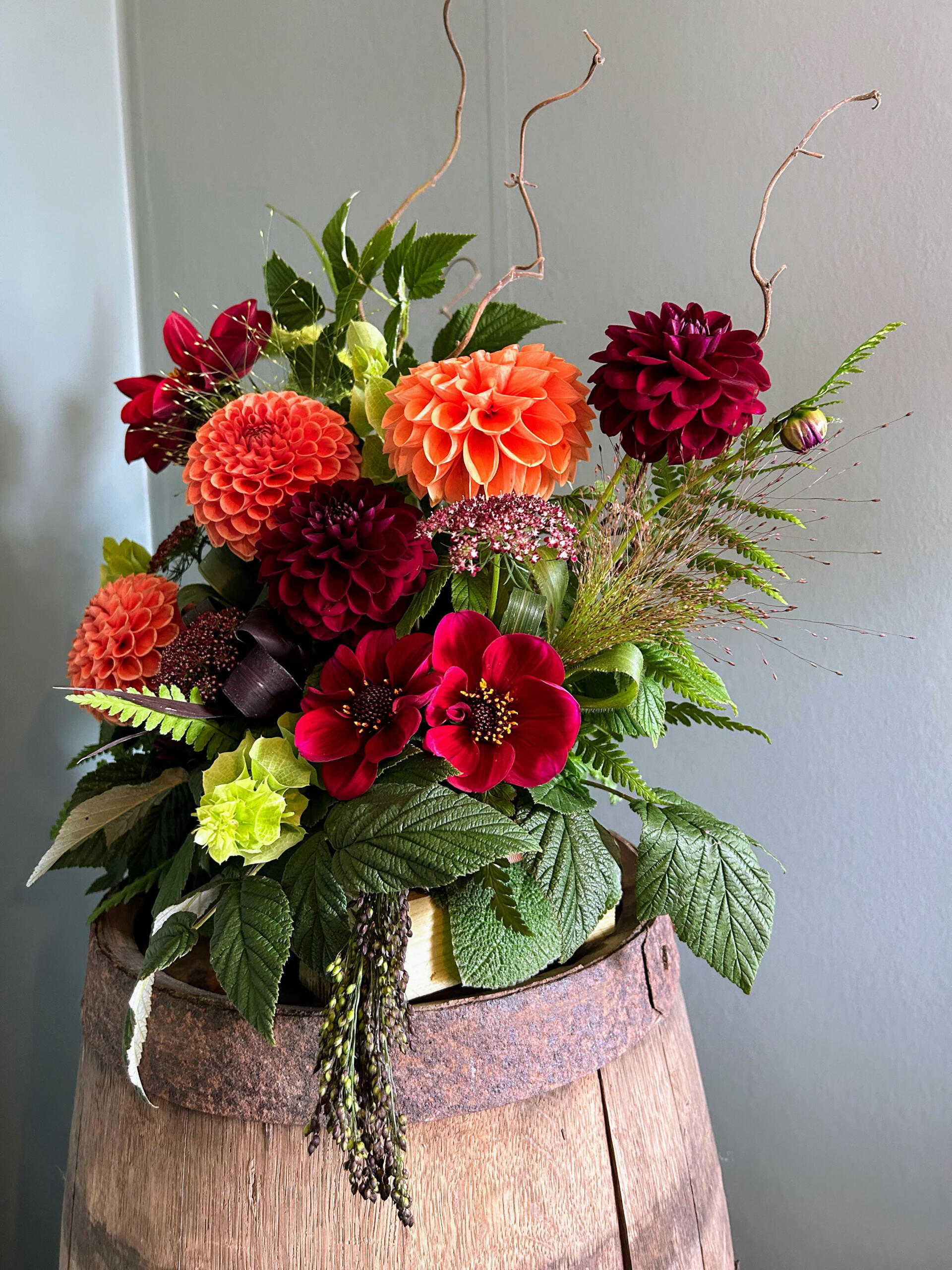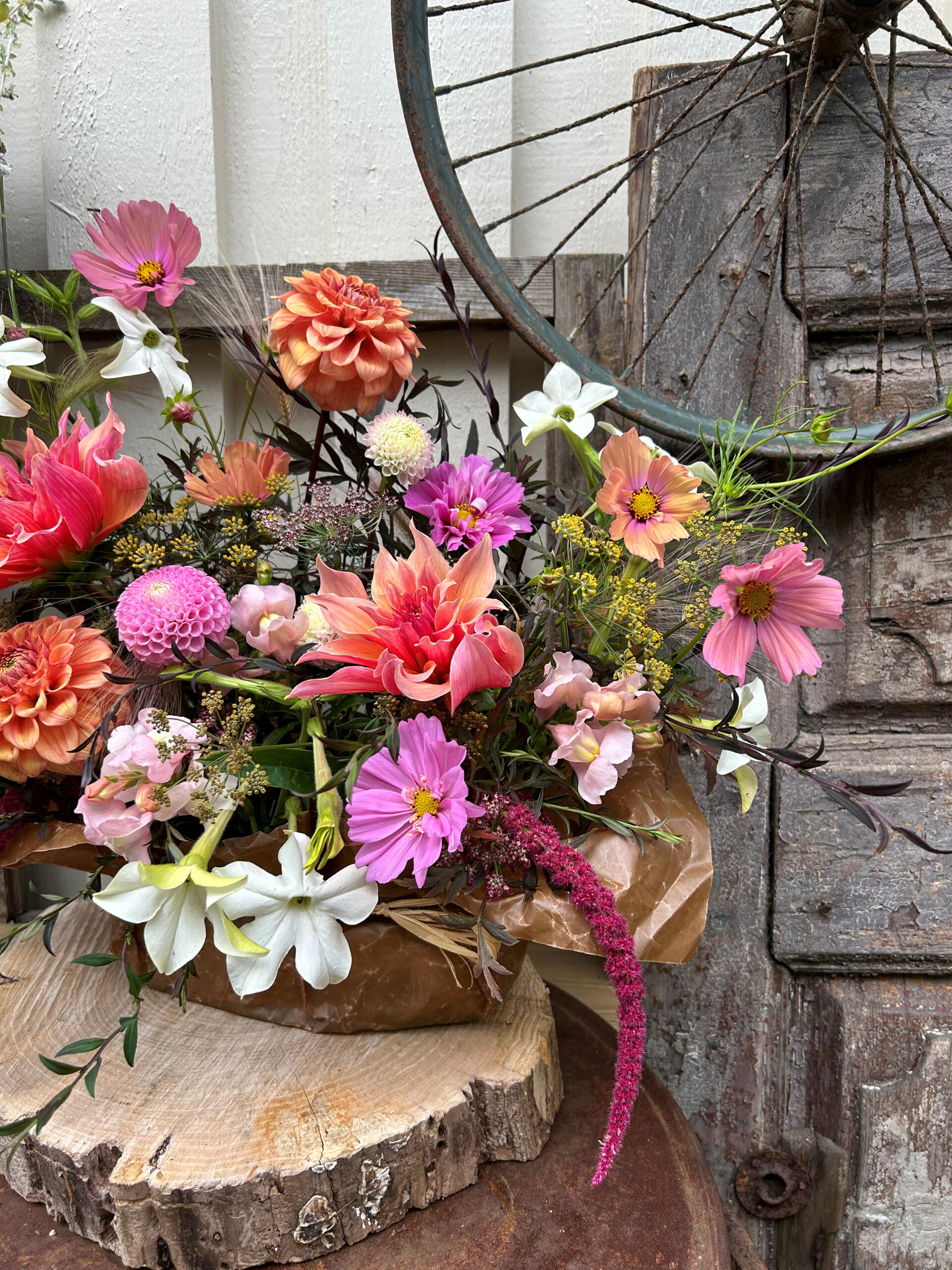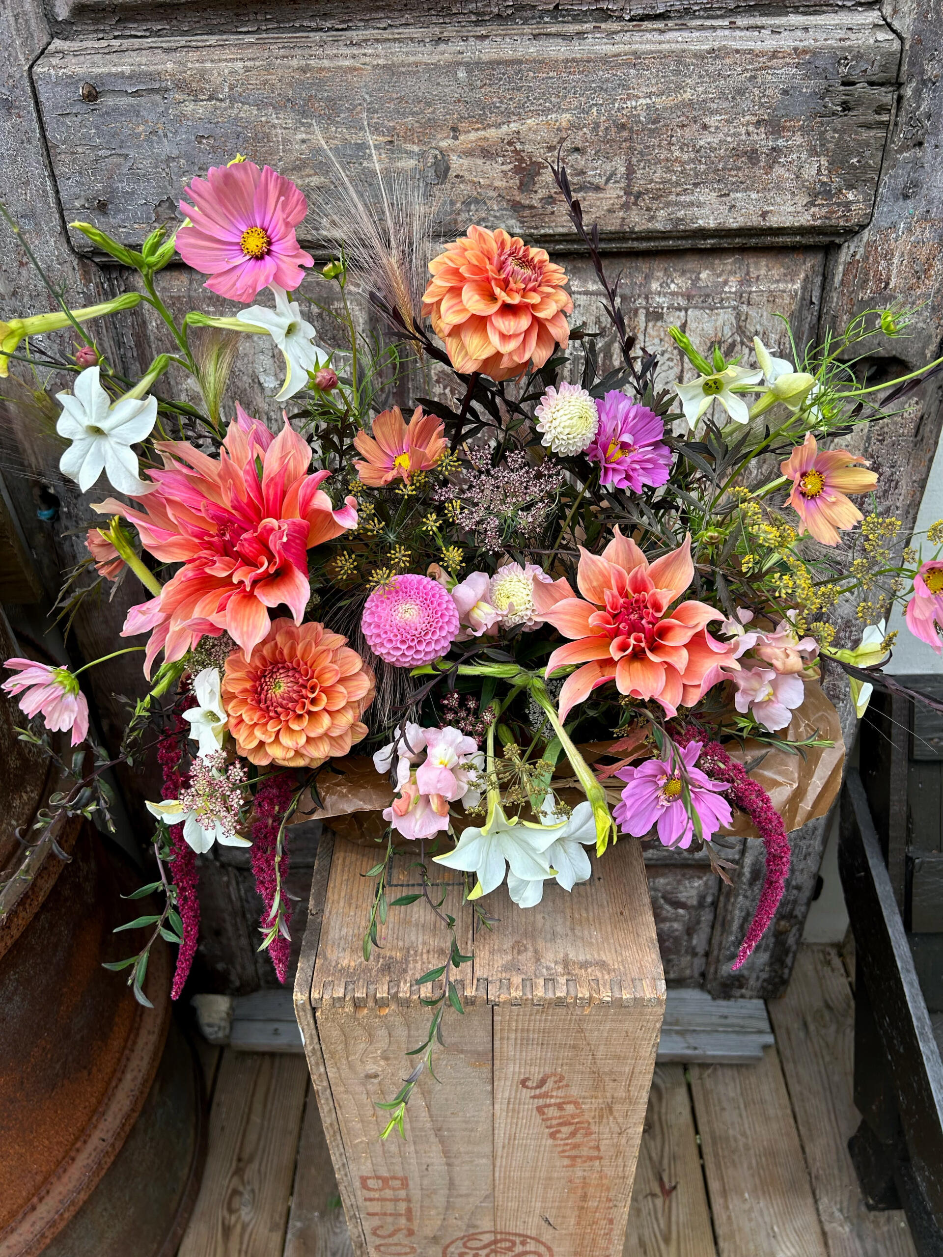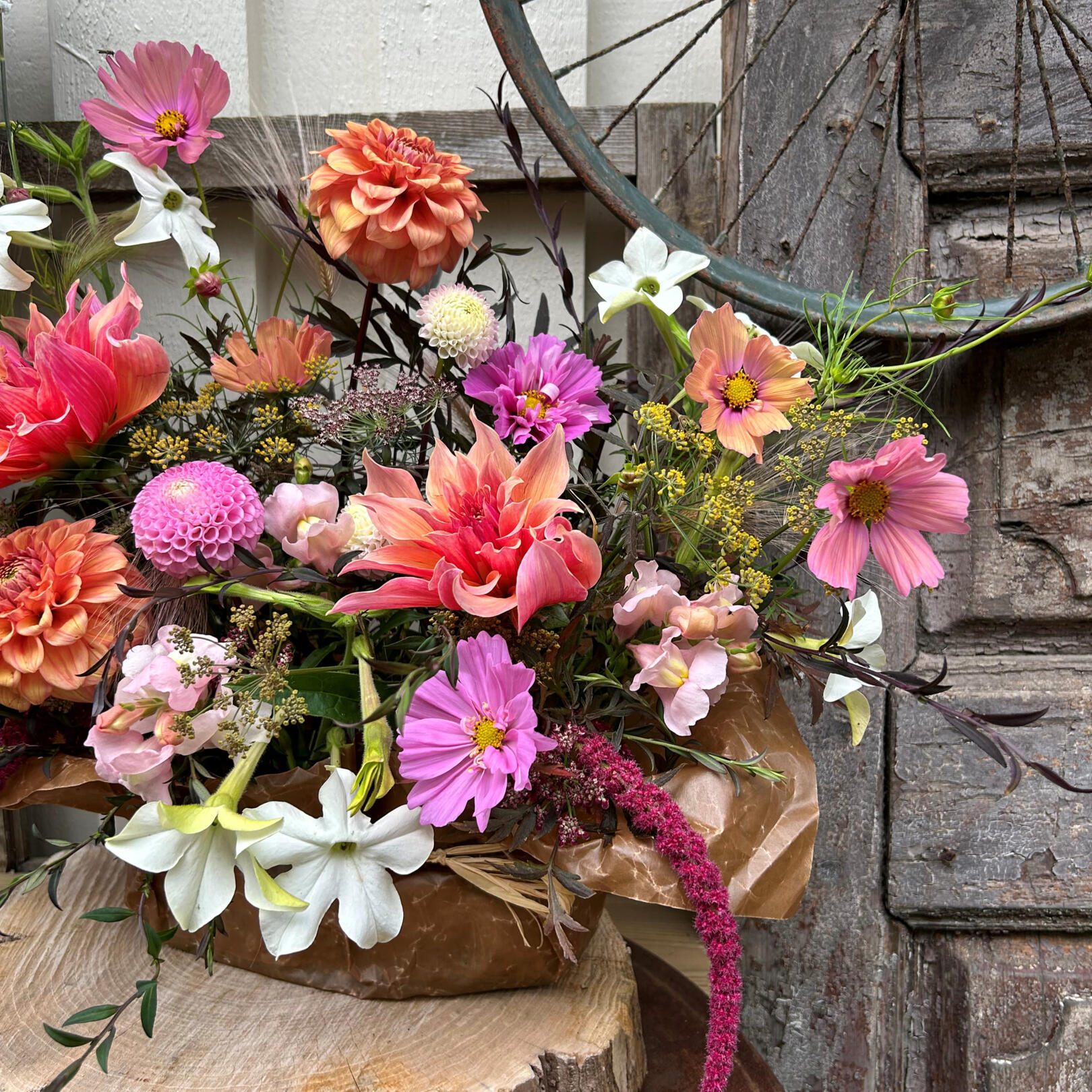Säsongens blommor, odlade på Tjörn och bundna med kärlek – unika buketter, dekorationer och personliga arrangemang för livets alla stunder, från fredagsbuketten till bröllopet.
