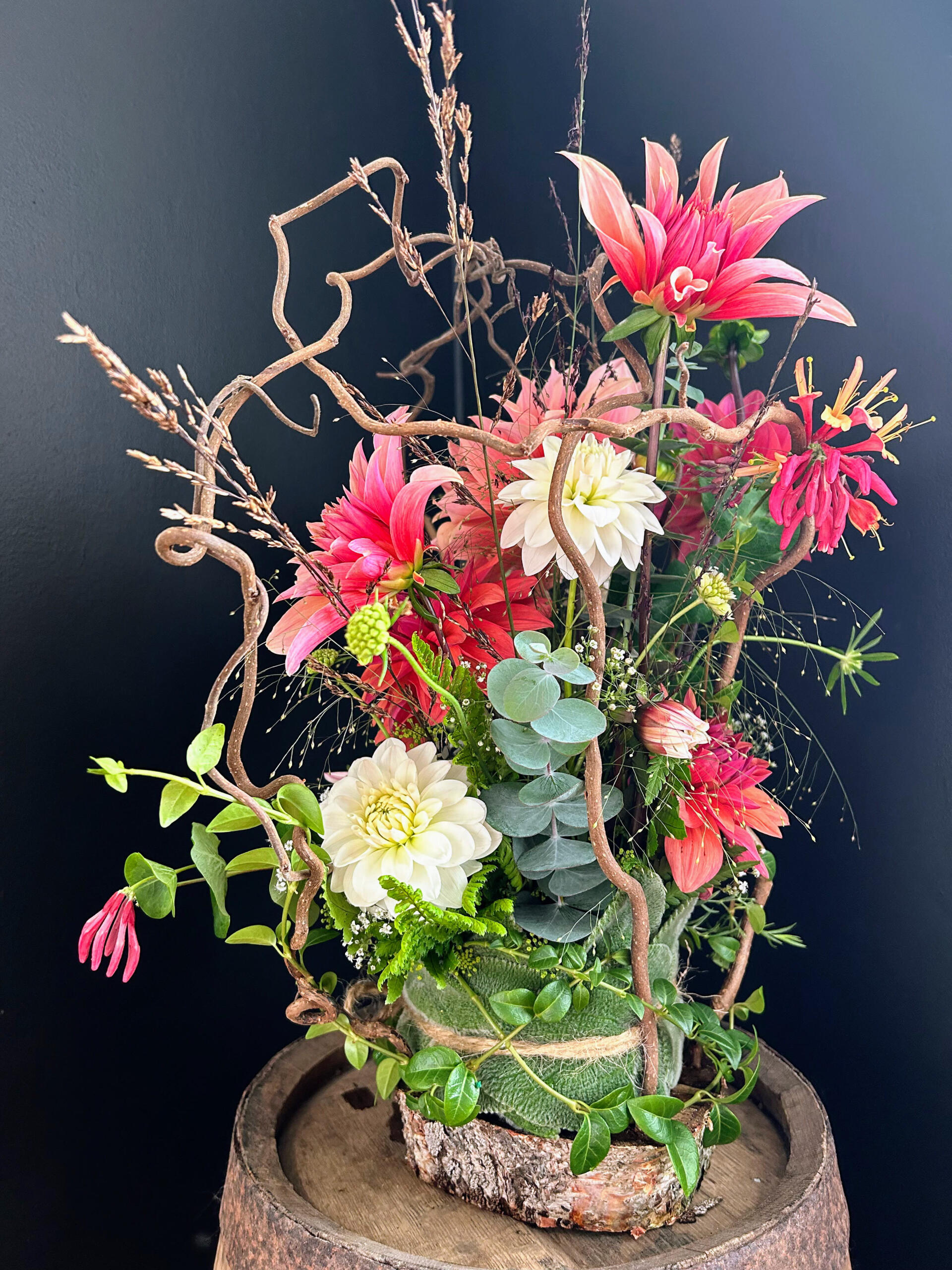 Här får du blommor som följer årstiderna. På våren och sommaren spirar egenodlade buketter och arrangemang fyllda av färg, doft och liv – skapade med omtanke och efter dina önskemål. När hösten och vintern kommer får de torkade blommorna ta plats, i form av hållbara buketter, kransar och dekorationer som förlänger blomster känslan året runt.