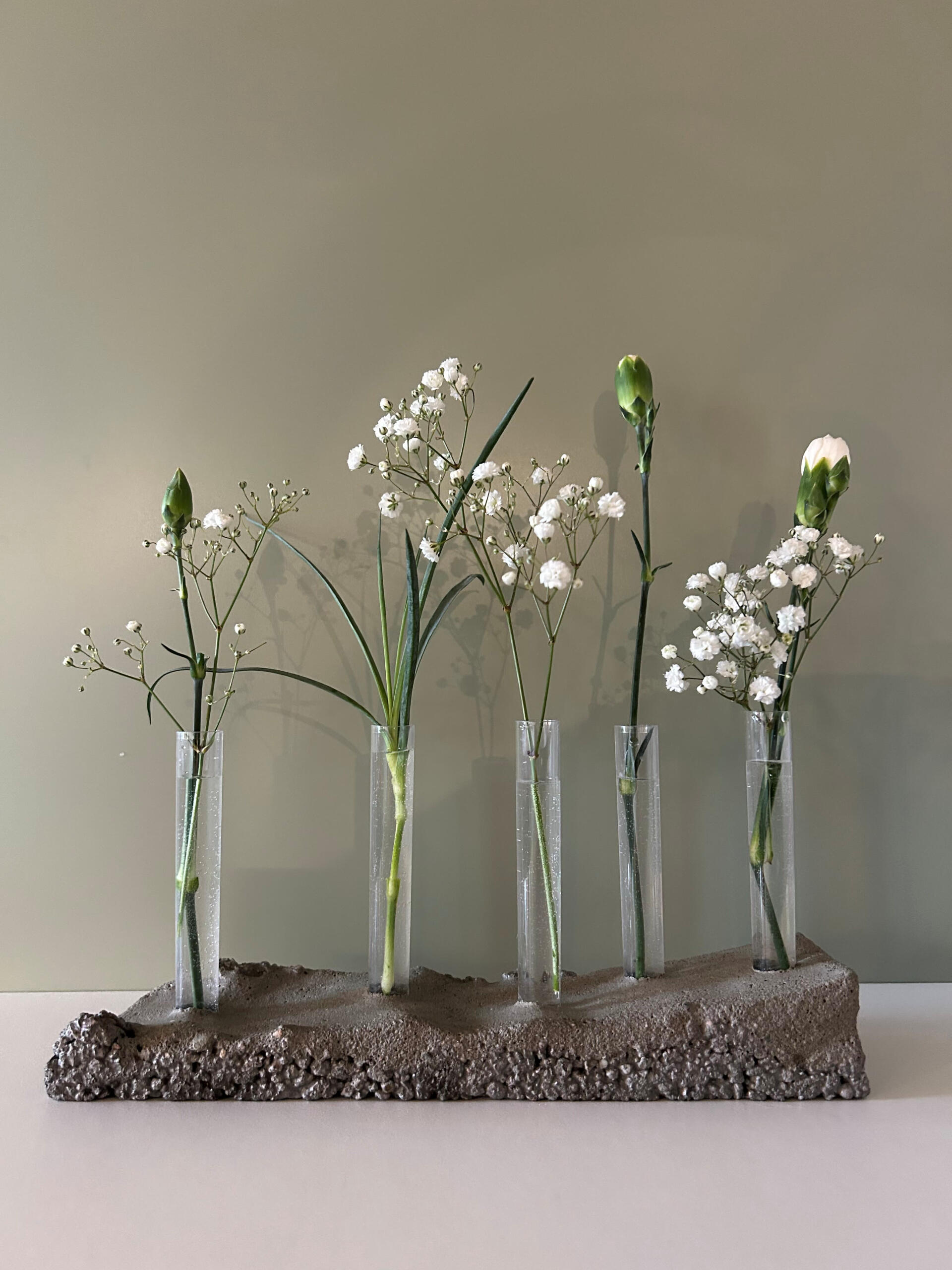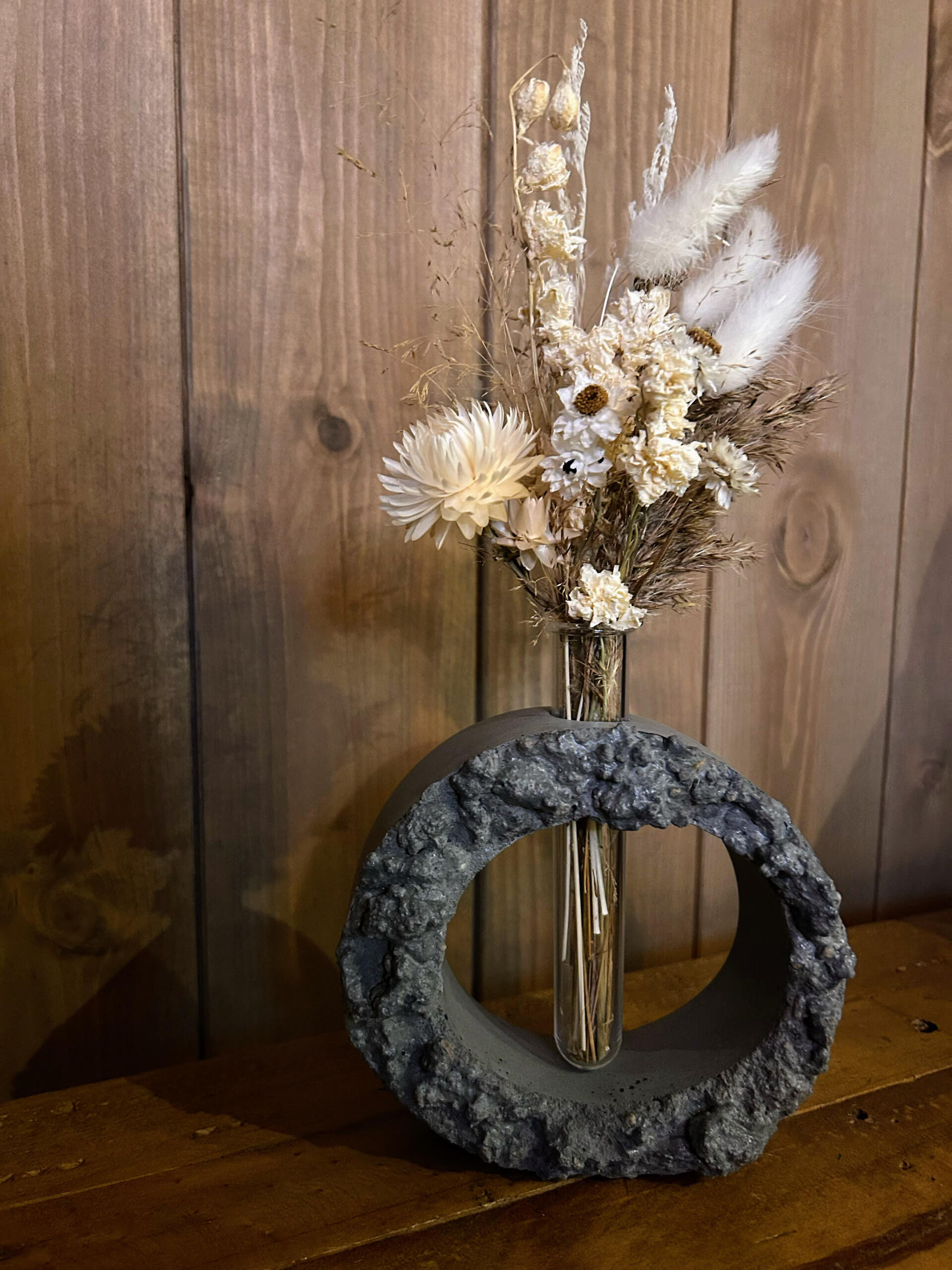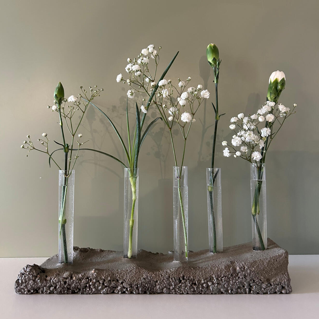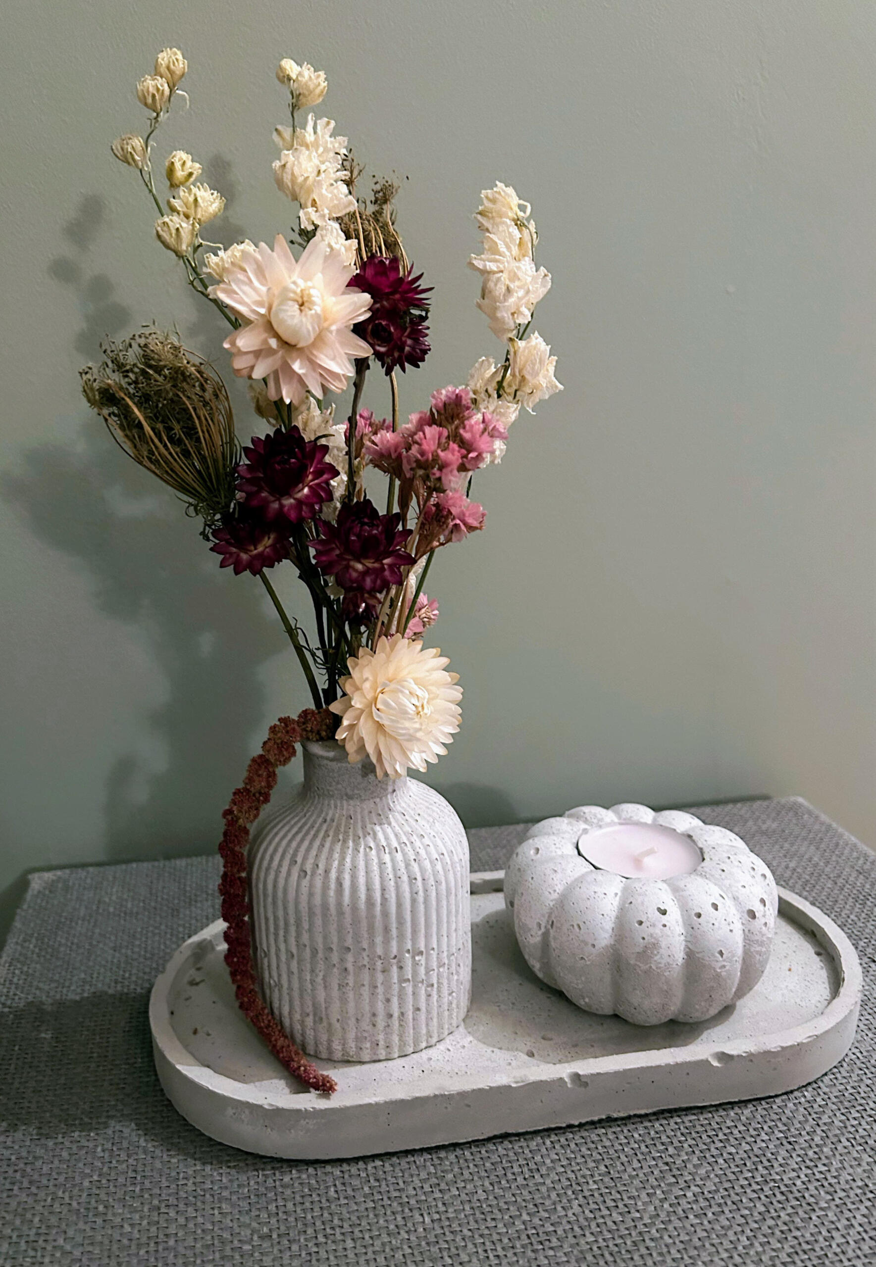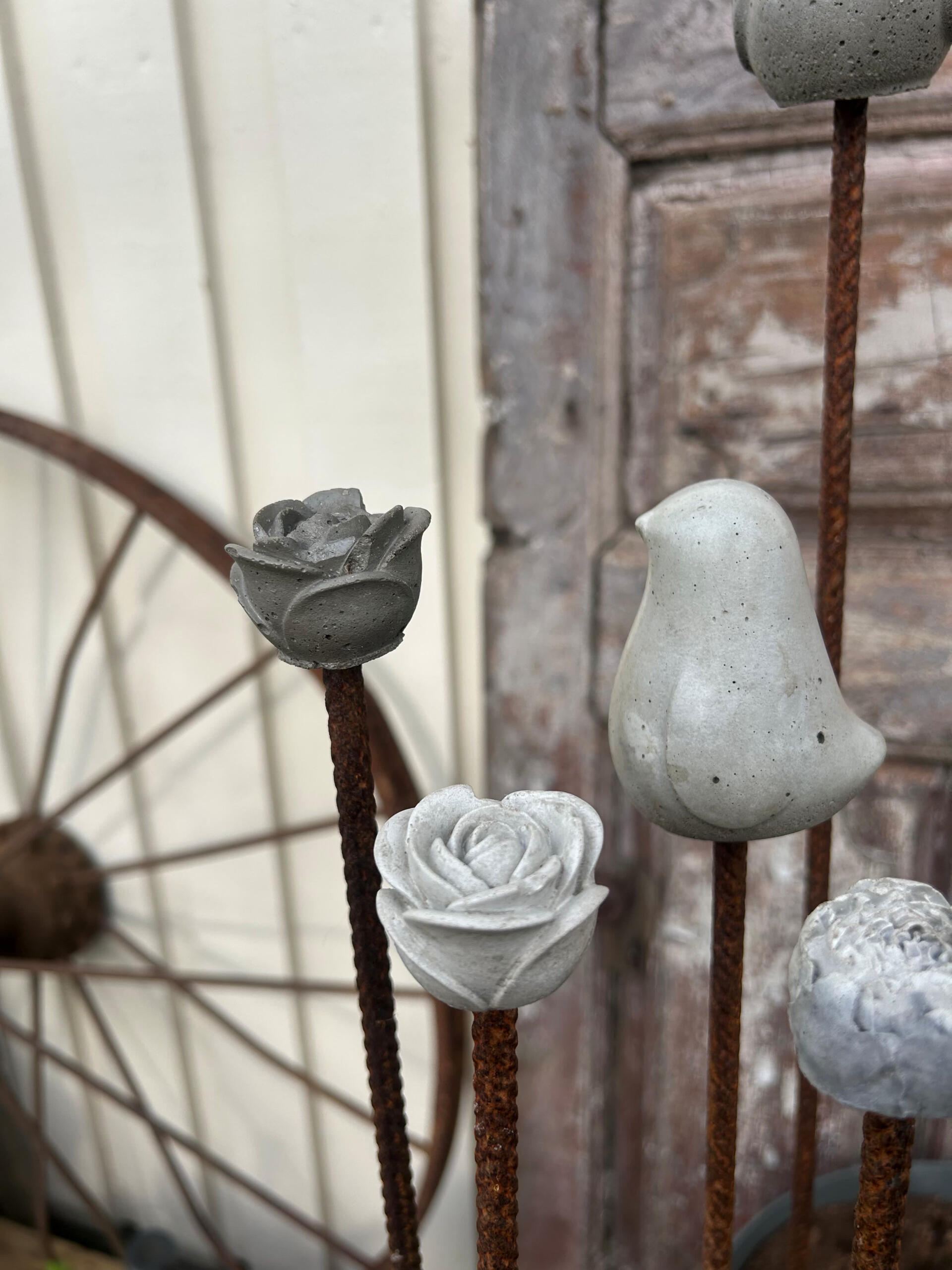 Som ett naturligt komplement till mina blomsterarrangemang skapar jag handgjutna betongdetaljer som ger en rustik och lantlig känsla. Mina produkter är vackra att använda för sig själva, men oftast kombineras det med blommor eller andra inredningsdetaljer. Varje produkt är handgjord och unik.