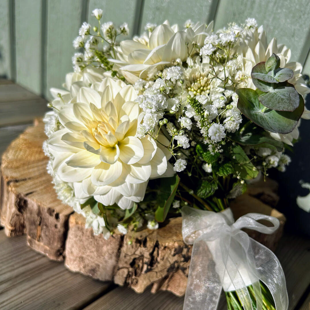 Jag erbjuder en helhetslösning där allt från brudbukett och corsage till bordsdekorationer binds samman i en enhetlig stil, skapad med kärlek till detaljerna. Jag skapar allt från: