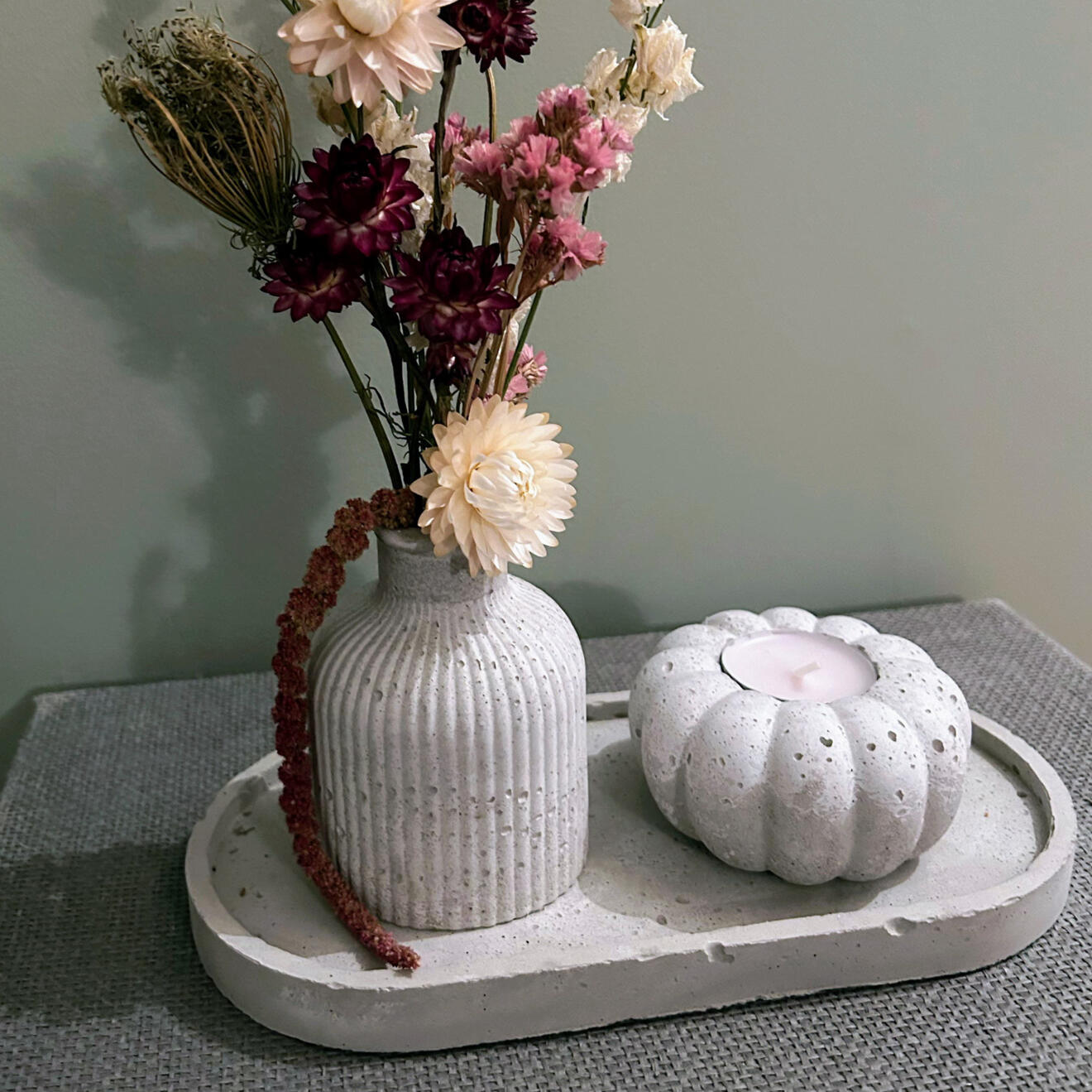 Betongfat: Handgjutna fat som passar utmärkt för ljus, smycken eller som bas för ett blomsterarrangemang.